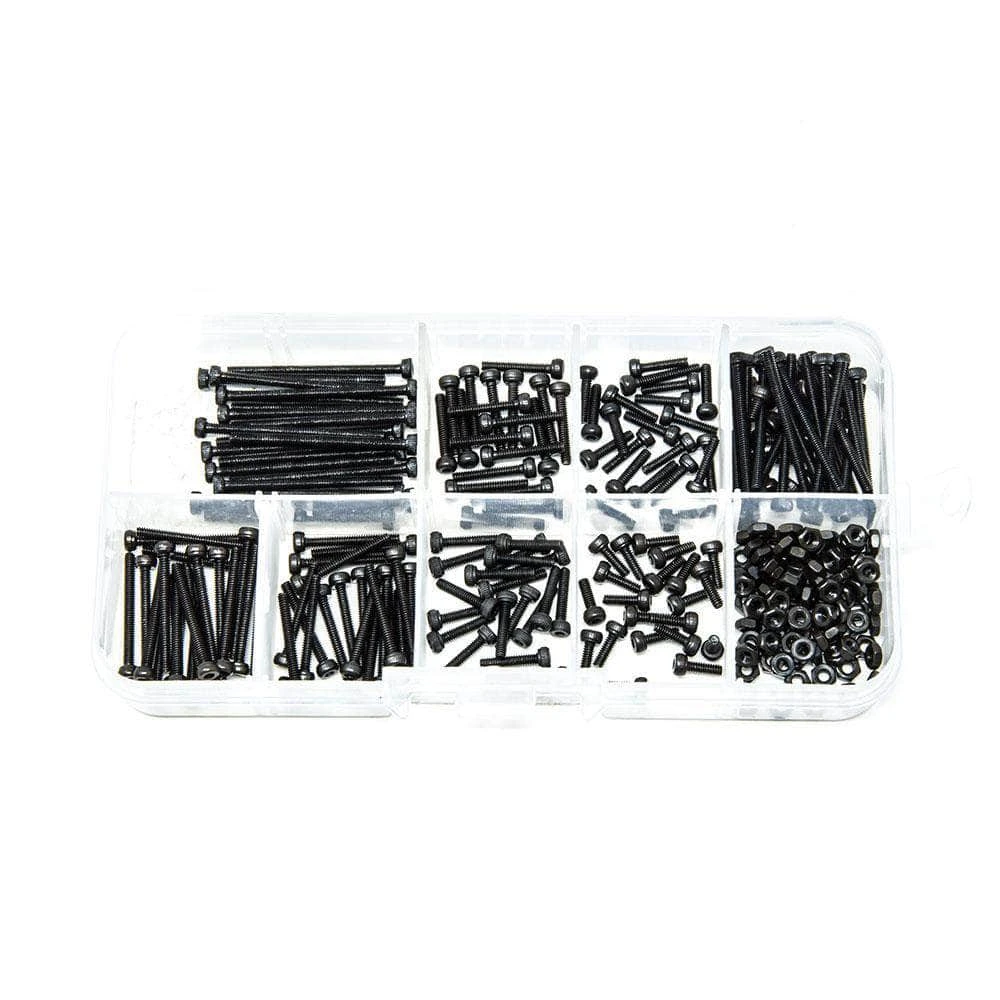 A must have for every build bench. Never be one screw short again! These black oxide hex head steel screws take a 1.5mm driver. These handy hardware kits are also available in M2 black steel and