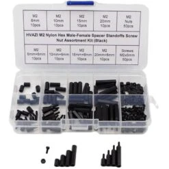 - M2 Black color total 180 pieces.Nylon Hex Spacers/Standoffs/Screws/ Nuts Assorted Kit