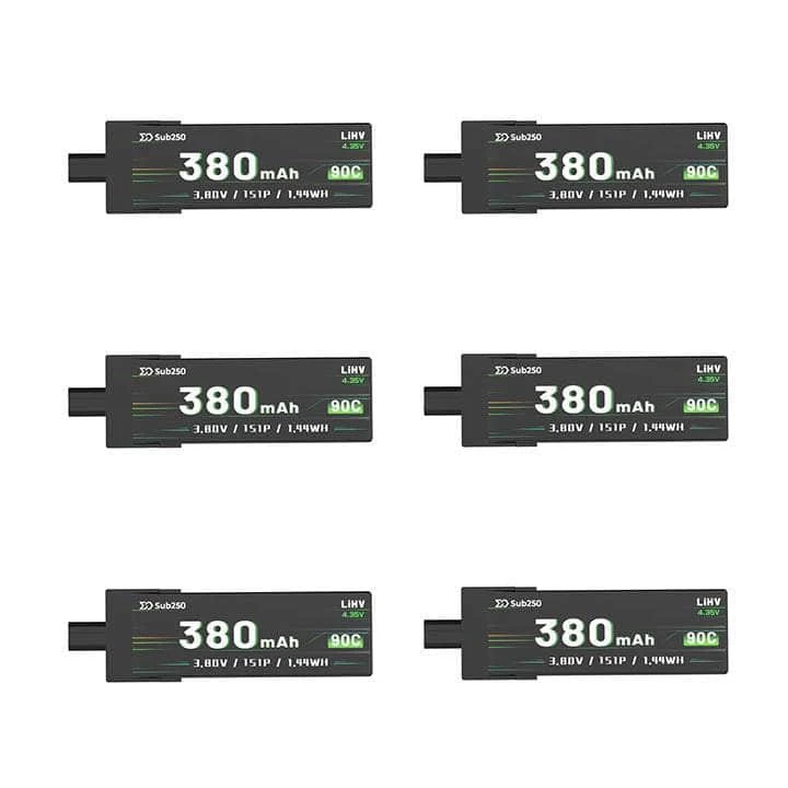 - 6x 3.8V 1S 380mAh 90C LiHV Batteries for Nanofly16