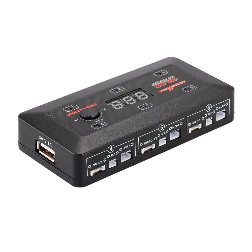 - 1x Ultra Power UP-S6 1S LiPo/LiHV 6 Channel DC Whoop Charger